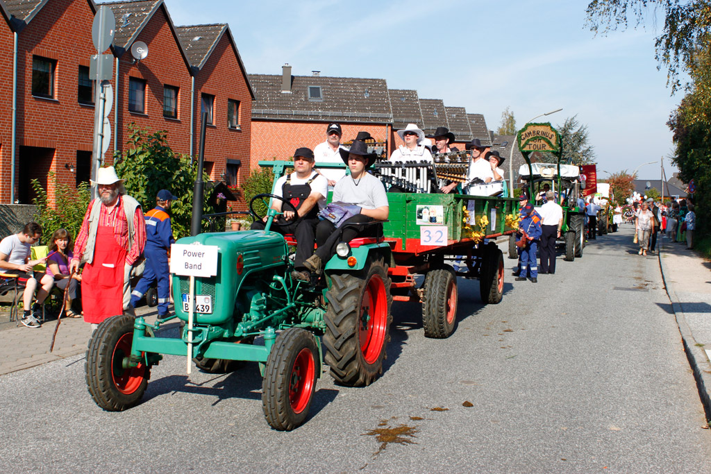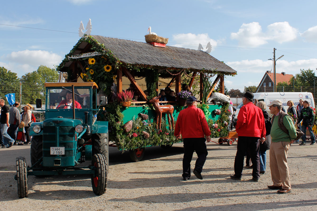 Nach circa 5 Kilometer Fußmarsch ist man dann schließlich auf dem Sülzbrack, dem Zielpunkt angekommen. Dort stellten sich die vielen, meist historischen Traktoren und deren teilweise bombastische Umzugswagen in Reih und Glied zum Bestaunen auf. Dazu gesellten sich Festzelte, Buden mit allerlei Essen, Trinken, Blumen oder anderem und mehrere Bühnen, auf denen traditionelle Tänze oder Musik vorgeführt wurden.